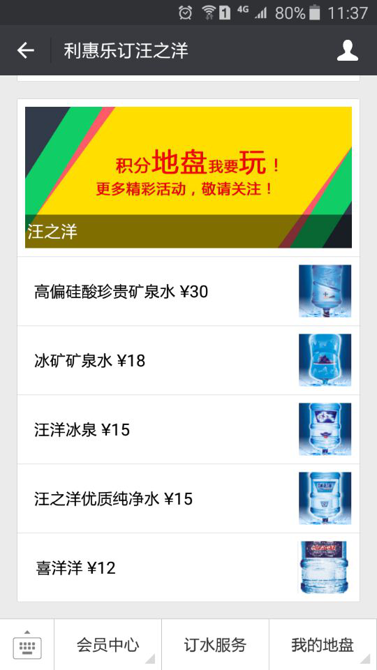 主要功能公众号在线订水、企业号受理订单、积分兑换、积分抽奖、项目已经拥有粉丝5万人。
